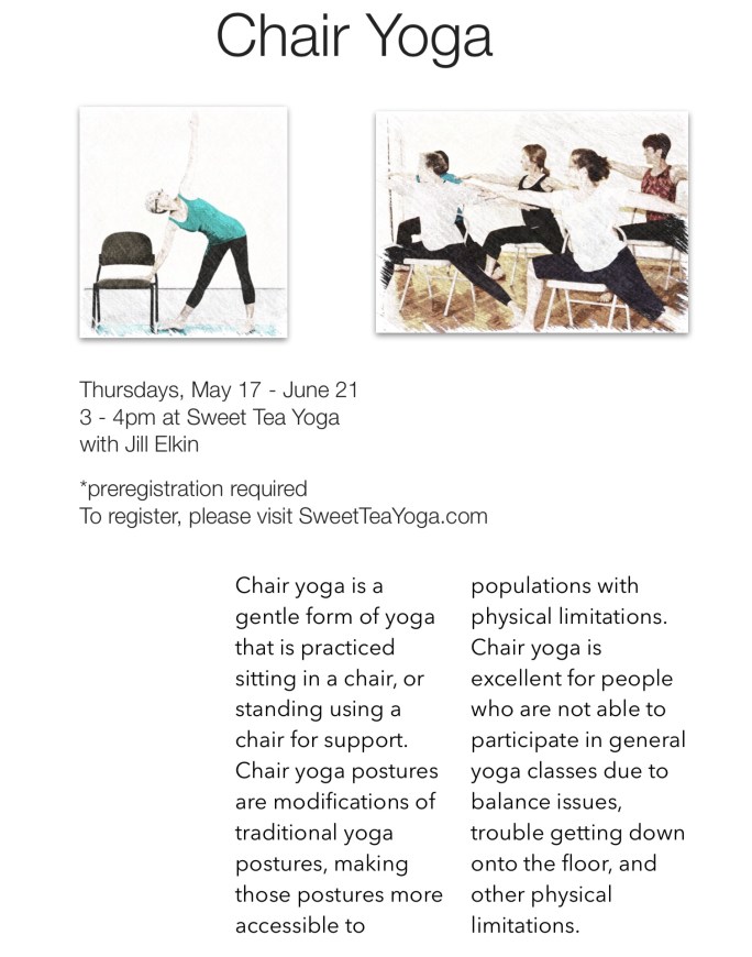 So, if you are tired of being tired, please consider trying something new. Restorative yoga classes are held on Tuesday nights at Sweet Tea Yoga 7:15-8:15 and at Salt MedSpa on Thursday evenings 6-7.
